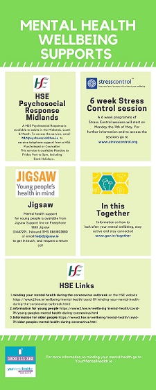 Anne O'Connor, Chief Operations Officer, HSE, said “The impact of this pandemic will be different for all of us and while not everyone will need mental health support, for those that do it’s important to have a variety of services that meet those needs. Picking up the phone and asking for help can appear daunting, but texting 50808 will connect you to a trained listening Crisis Volunteer. Parallel to this important service, the HSE, through our Psychosocial Response Project, is aligning the different levels of supports that are available online, by phone and text to improve accessibility to mental health resources for those who might be struggling at this time."
