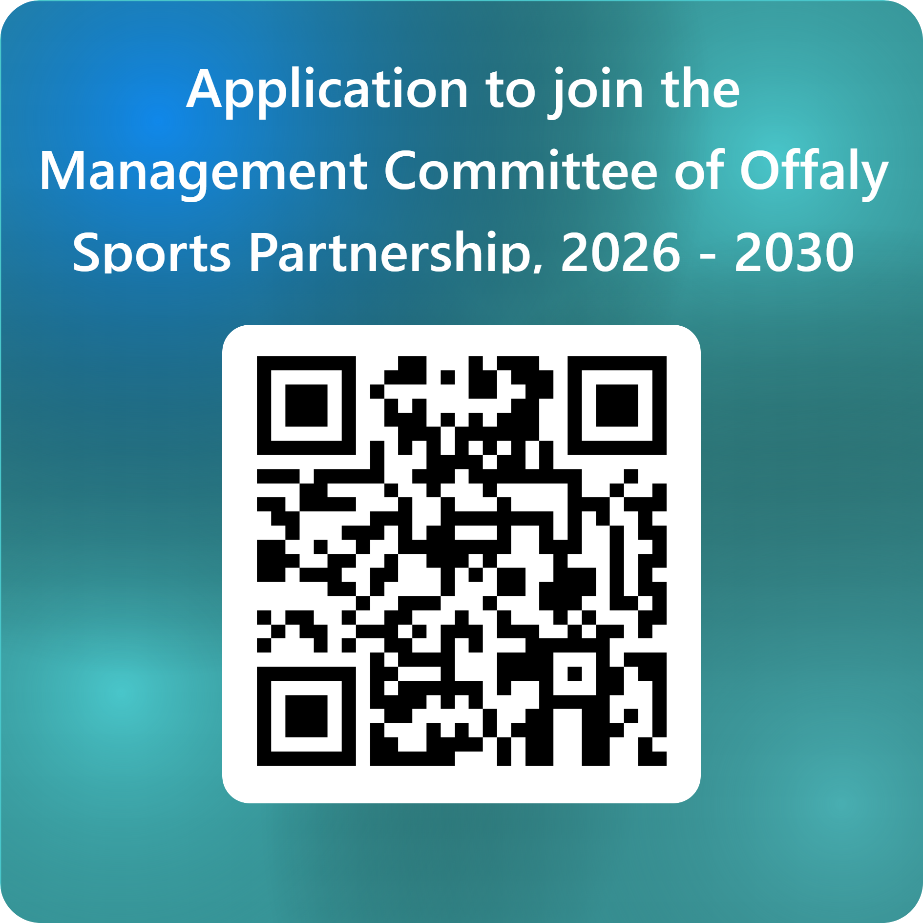 For further information and to apply to join the Management Committee of Offaly Sports Partnership, scan the QR code.