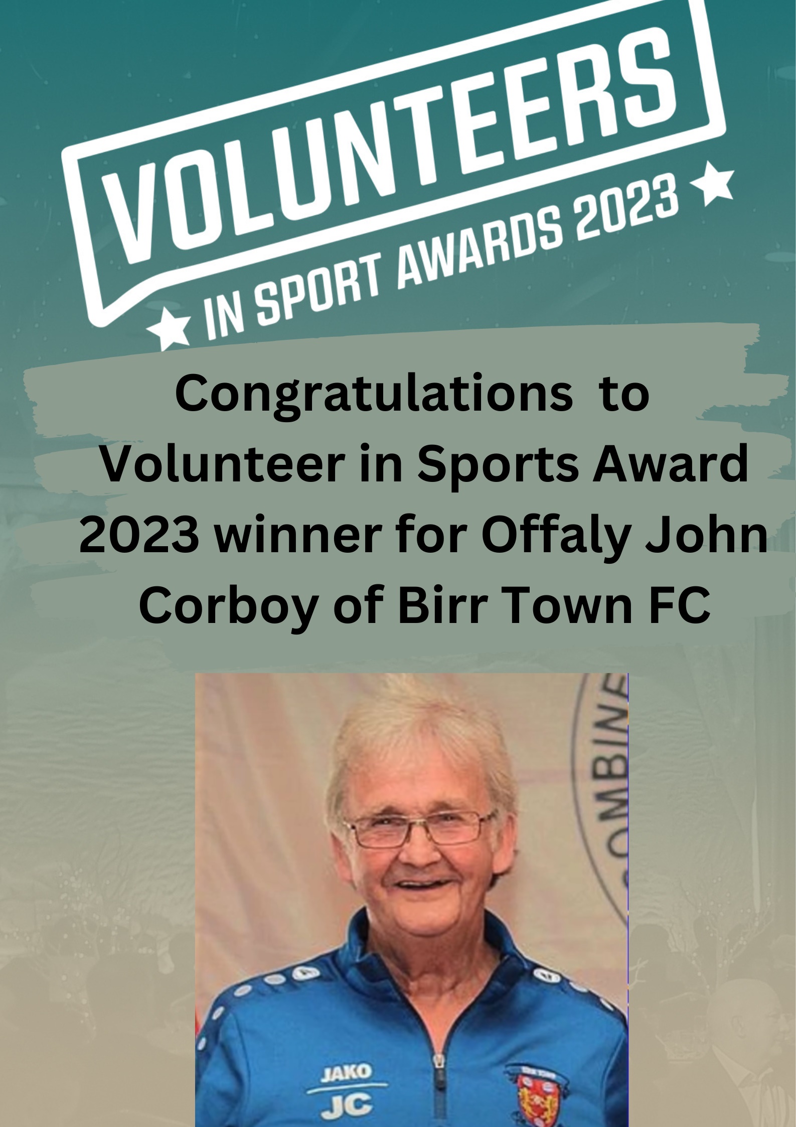 John Corboy named the 2023 Co Offaly recipient of the Federation of Irish Sport “Volunteers in Sport Awards”