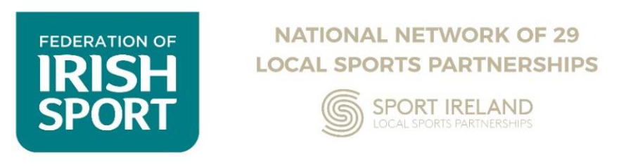 The Federation of Irish Sport “Volunteers in Sport Awards” is supported by the national network of 29 Local Sports Partnerships; and the awards ceremony will take place at The Crowne Plaza Hotel, Blanchardstown on Thursday 29th February 2024