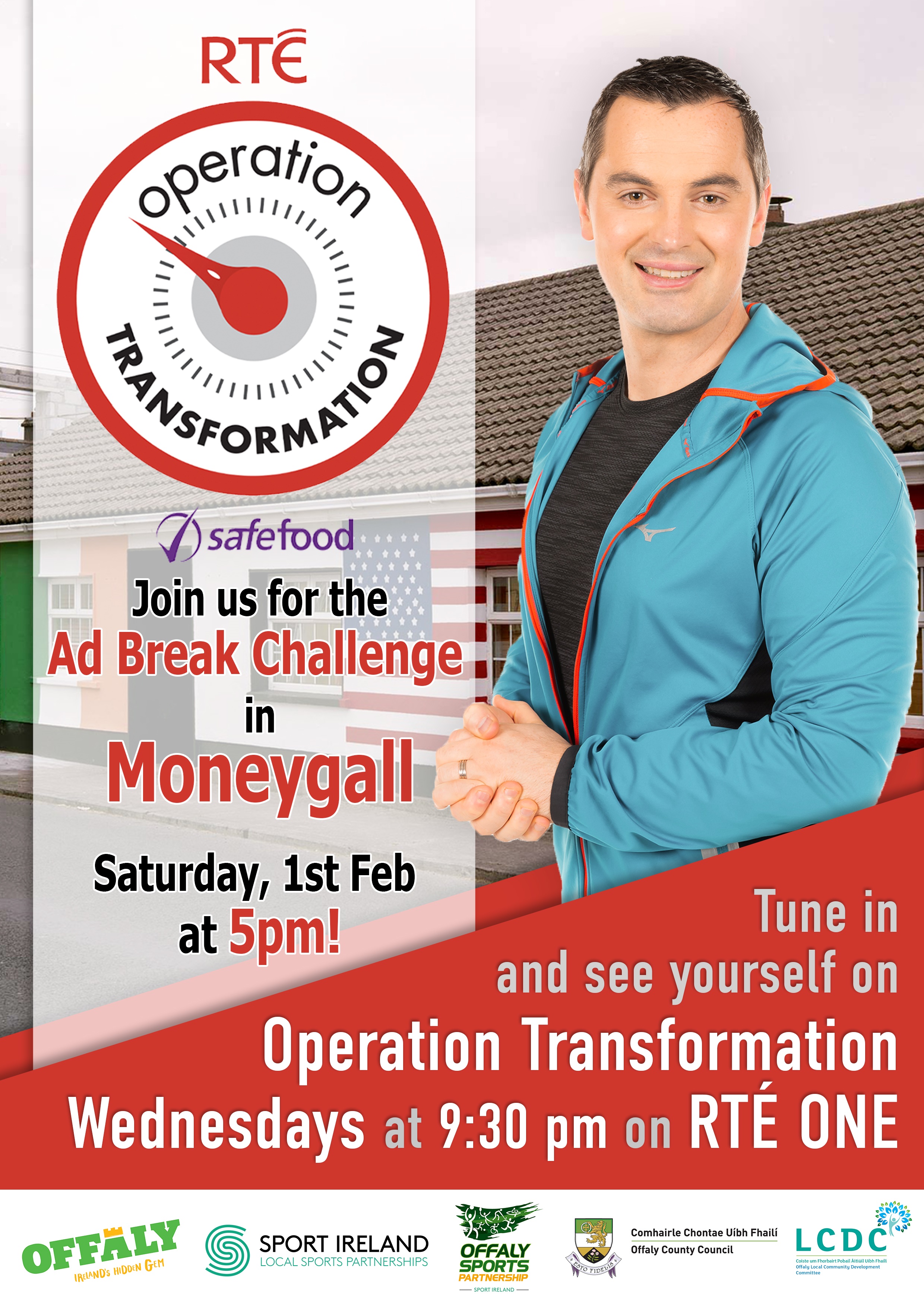 Our fifth Ad Break Challenge will be filmed in Moneygall on Saturday 1st February at 5pm. We want as many people as possible to join us and kick start the new year with Operation Transformation.